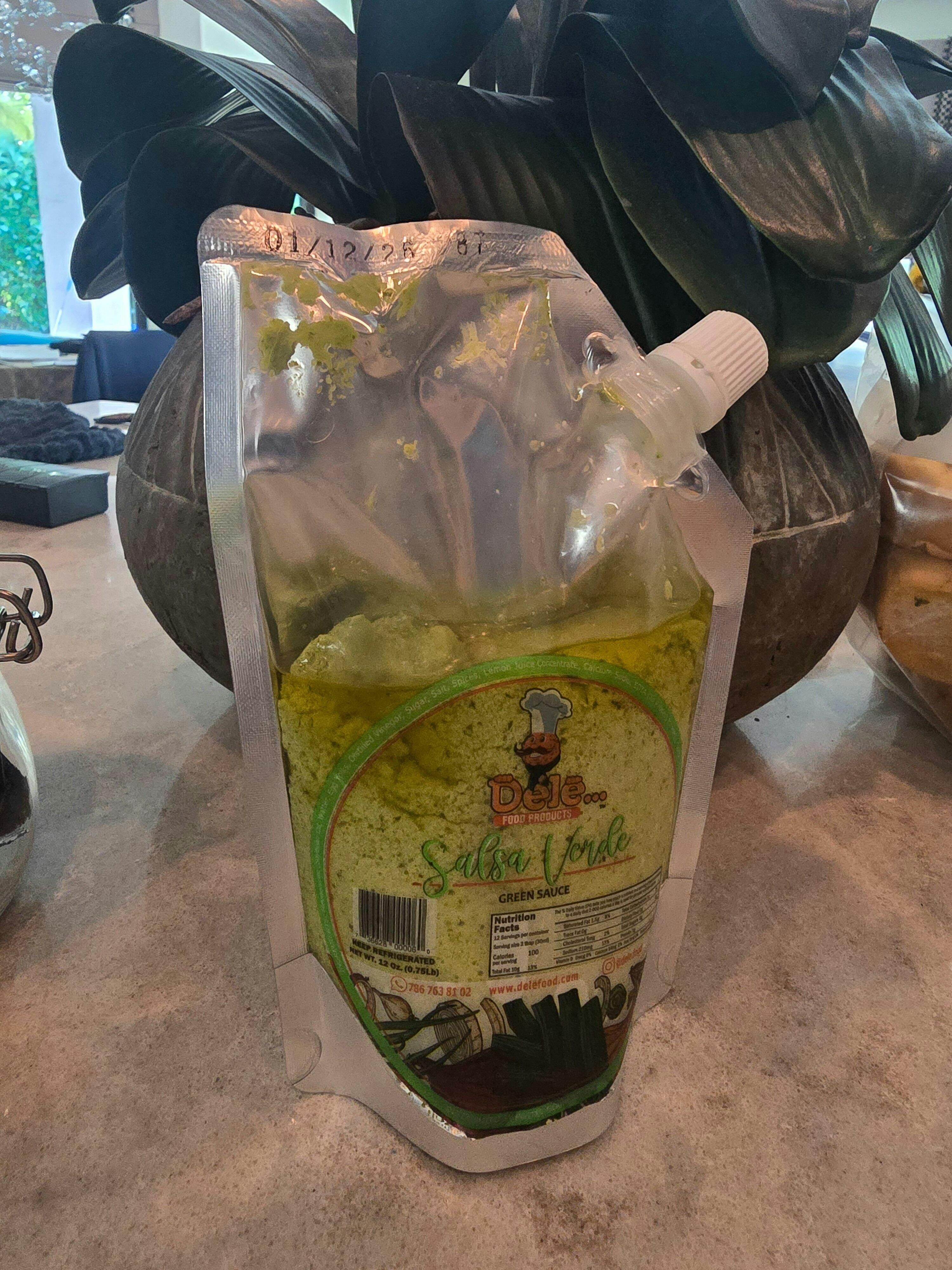 I served the Salsa Verde with the Dele beef empanadas and it was so yummy! We had also ordered some filete de pollo from a Cuban restaurant, and the chicken was not flavorful. We topped the chicken with some of the Salsa Verde, and it made the chicken DELICIOUS! This is something I will always keep in my refrigerator.